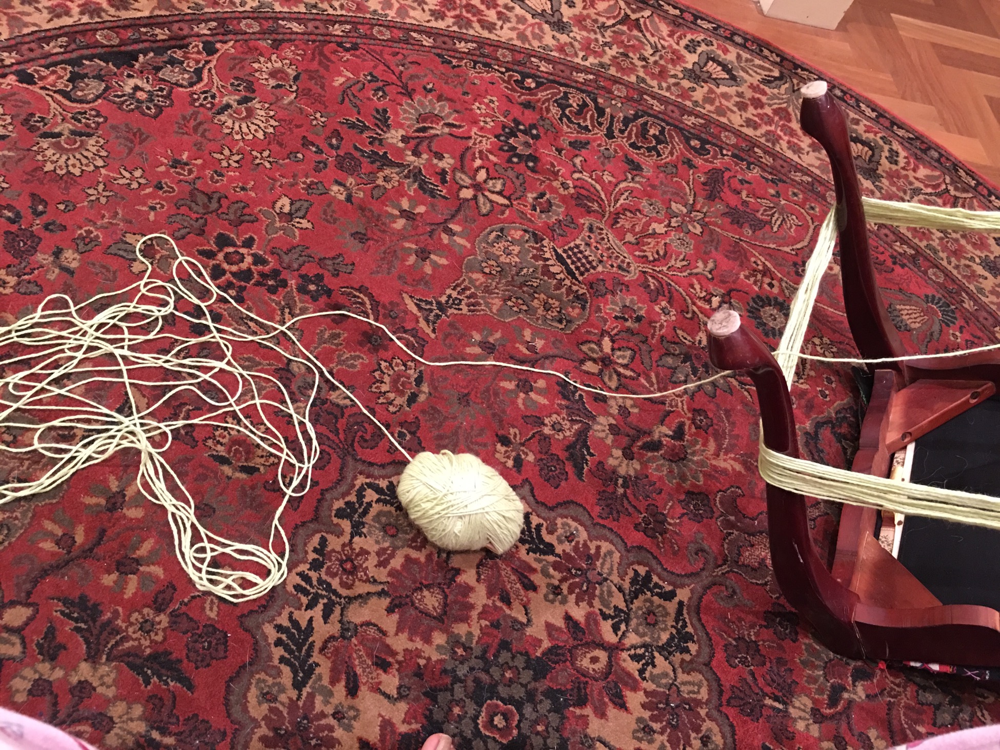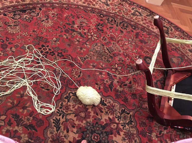 Then of course it became clear that I needed some inspiration and really wanted to ask you all… How do you do yours? Each one of us who crafts and works with yarn must have had to do this. Someone suggested to me once to use an upturned chair and that’s what I’ve used in these pictures.