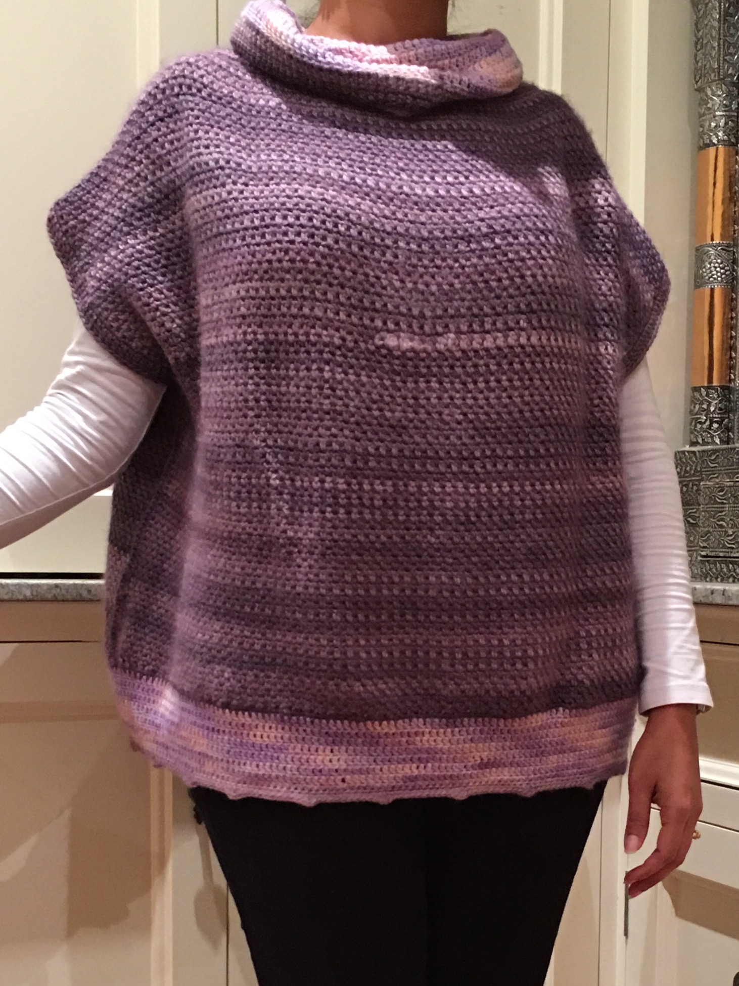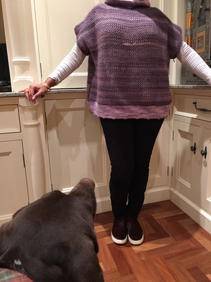 I used 12 balls of Amethyst, it’s 70% wool and 30% soybean silk. So… Admittedly I never envisaged this jumper to turn out quite the way it did. What went wrong I hear you ask? It was all about the gauge! Really you say… Could anyone possibly get it so very wrong! Yes I know…. I know.