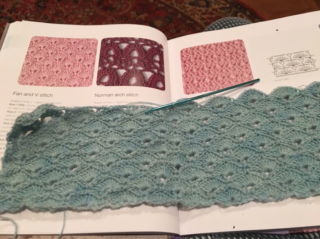 Here is my new challenge: I have to use some beautiful fine lace yarn and make myself something wearable. I’m aiming for a rectangle top like this in the picture below. This is a free pattern on the lion brand website. This picture is taken from their website. Now I’m at the stage of trying out new stages and I’m really enjoying it.